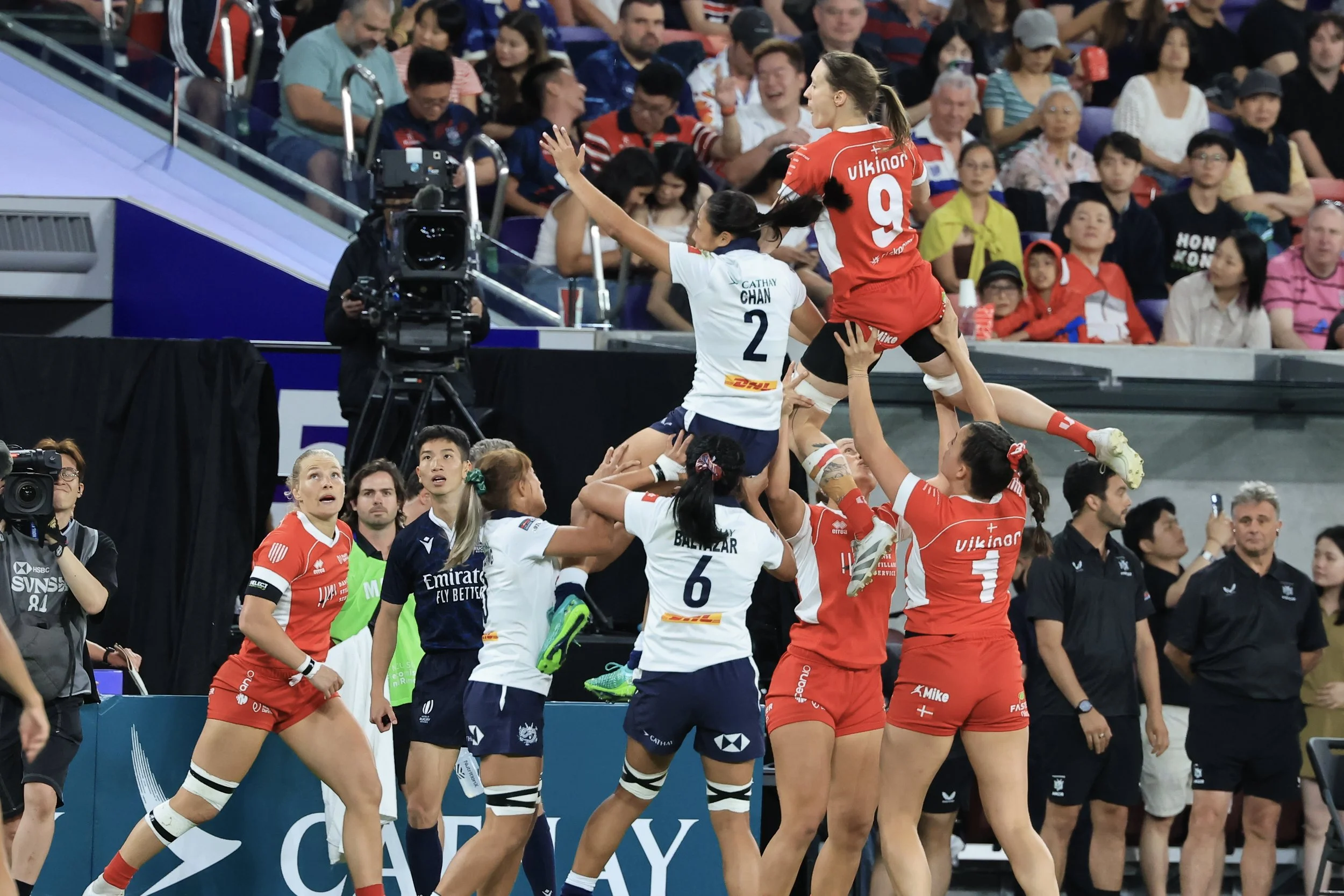 同樣以衛冕身份出戰「Melrose 銀劍賽」的中國香港女子七人欖球隊首場對陣非亞洲球隊的丹麥,港隊上半場落後,下半場憑隊中靈魂球員莊嘉欣把握機會連入兩球,最終跟丹麥賽成平手。