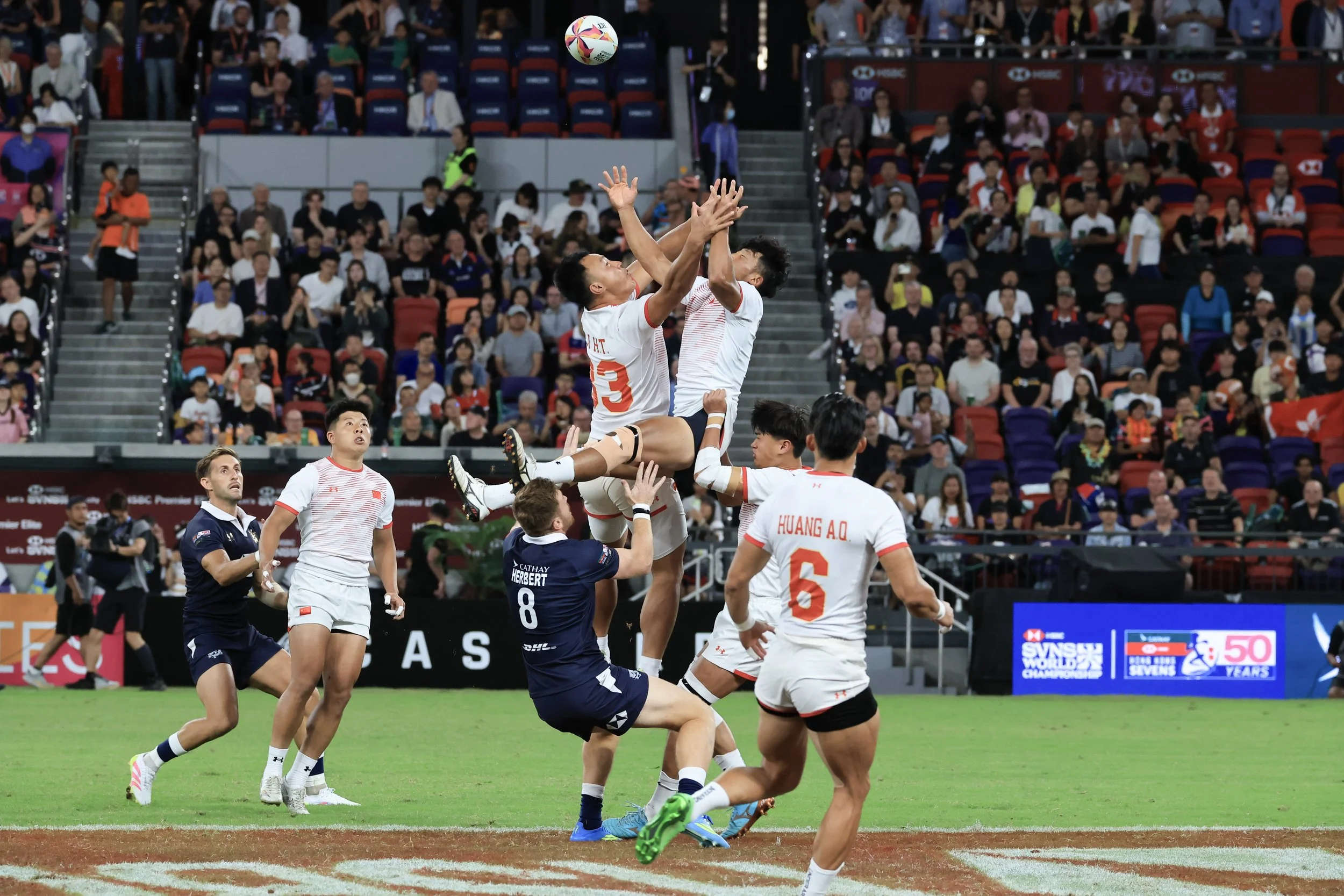開幕式結束後,中國香港男子隊隨即展開衛冕「Melrose銀劍賽」的征途,在首場率先對中國國家隊,隊中靴貝特(Liam Herbert)全場表現神勇,上、下半場各有「達陣」,隊友拜恩菲立斯(Bryn Phillips)、艾維塔比奧(Matteo Avitabile)、確斯(Rory Stewart Cox)及芮飛(Matt Rickard)也各有所獲。
